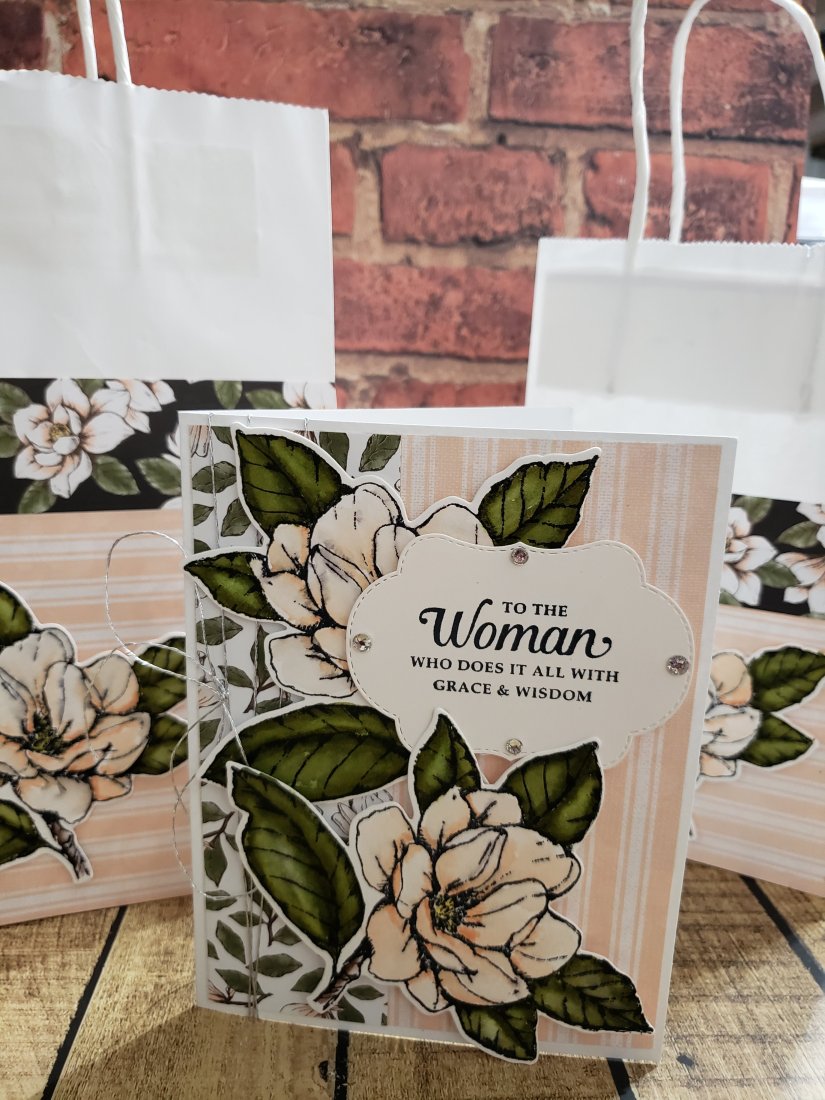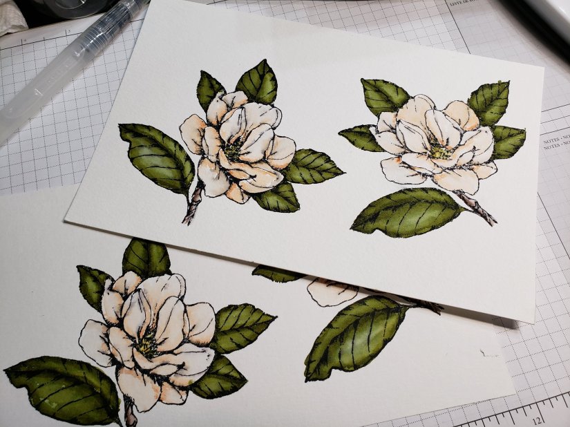 Had a relaxing moment to watercolor a card for my Mom. Been designing a lot of cards lately for others. Was nice to do something just for her. Loving the new Magnolia Suite from Stampin’ Up! new catalog premiering the first week of June.